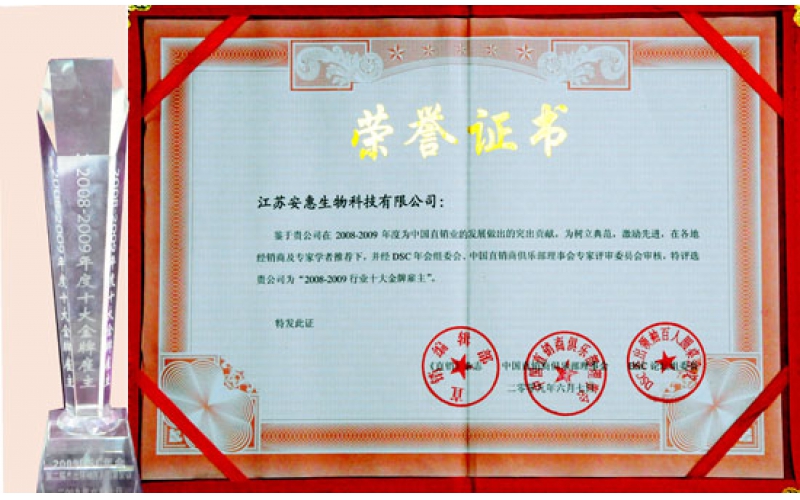2009年6月,安惠公司被評為2009中國直銷最具發(fā)展?jié)摿ζ髽I(yè)。