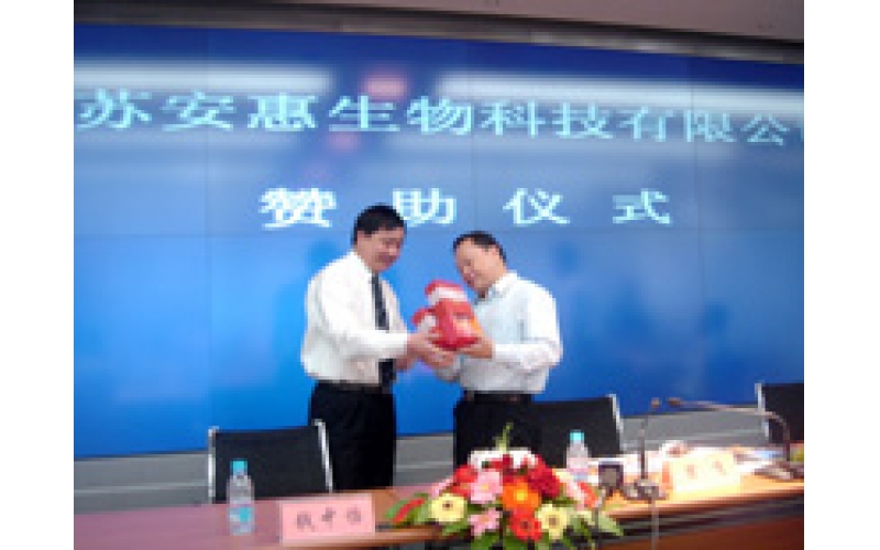 2004年9月24日,陳惠董事長向南通市副市長宋飛捐贈的公司產品作為首屆世界大城市帶發展高層論壇專用保健品。