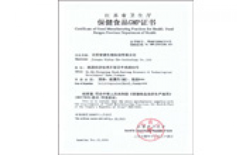 2004年11月26日,安惠公司生產車間通過保健食品GMP認證。